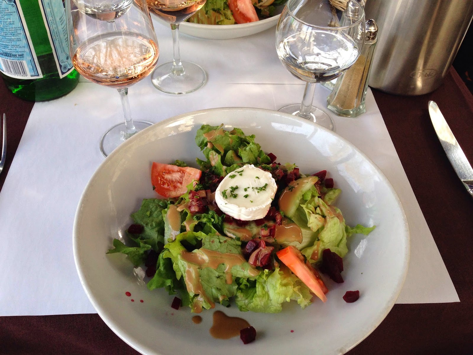 Following that we had lunch at a cute place overlooking Notre Dame and then meandered our way back to our apartment. One of the things I love about being on vacation is not having anywhere to go or any time to be anywhere. Which allows you to really, really enjoy your time. We did so with a meal option that included a starter, entree, and some wine. I forgot to take a picture of my entree, but that's okay because I really think the highlight of the show was the starter. I had a delicious salad that included beets and goat cheese. I had never eaten a beet before this summer when I began the CSA I was a part of and then I sort of overdosed on beets eating them week after week. This light amount of beets was PERFECT.