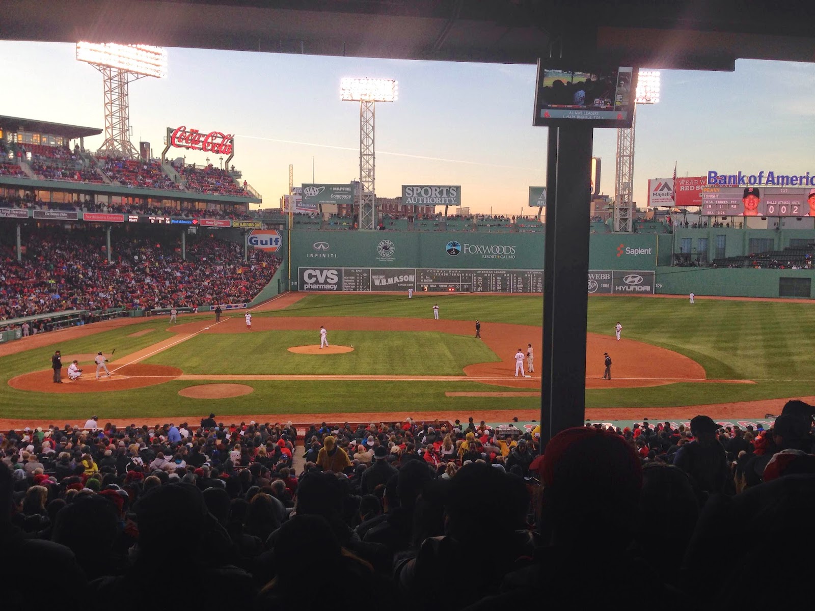 The rest of my weekend after I left you on Saturday night was great. It included lots of family time with my mom, spin class on Sunday with amazing shout outs from the teacher about my marathon, celebrations at my grandmother's on Sunday, Boston-ness, a run along the river, and a stop at my dad's on Monday on the way home. We had a big Easter dinner on Sunday, cleaned my grandmother out of her jelly bean's and enjoyed the sunny weather outside. However, I left my family celebration a little bit earlier than usual on Sunday to head in to Boston and enjoy the Red Sox vs. Orioles game on Easter night. It was an amazing come-from-behind win in the 9th inning by the Red Sox and a beautiful, fun evening with some of my best friends!