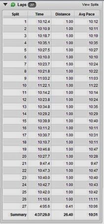 And my Garmin mile by mile splits are below. As you can see, mile 9-10 was when I was looking for Jess and Dani and then, I picked it up around mile 20ish with my "I will NOT hit a wall!" mindset! Otherwise, I had a fairly consistent race!