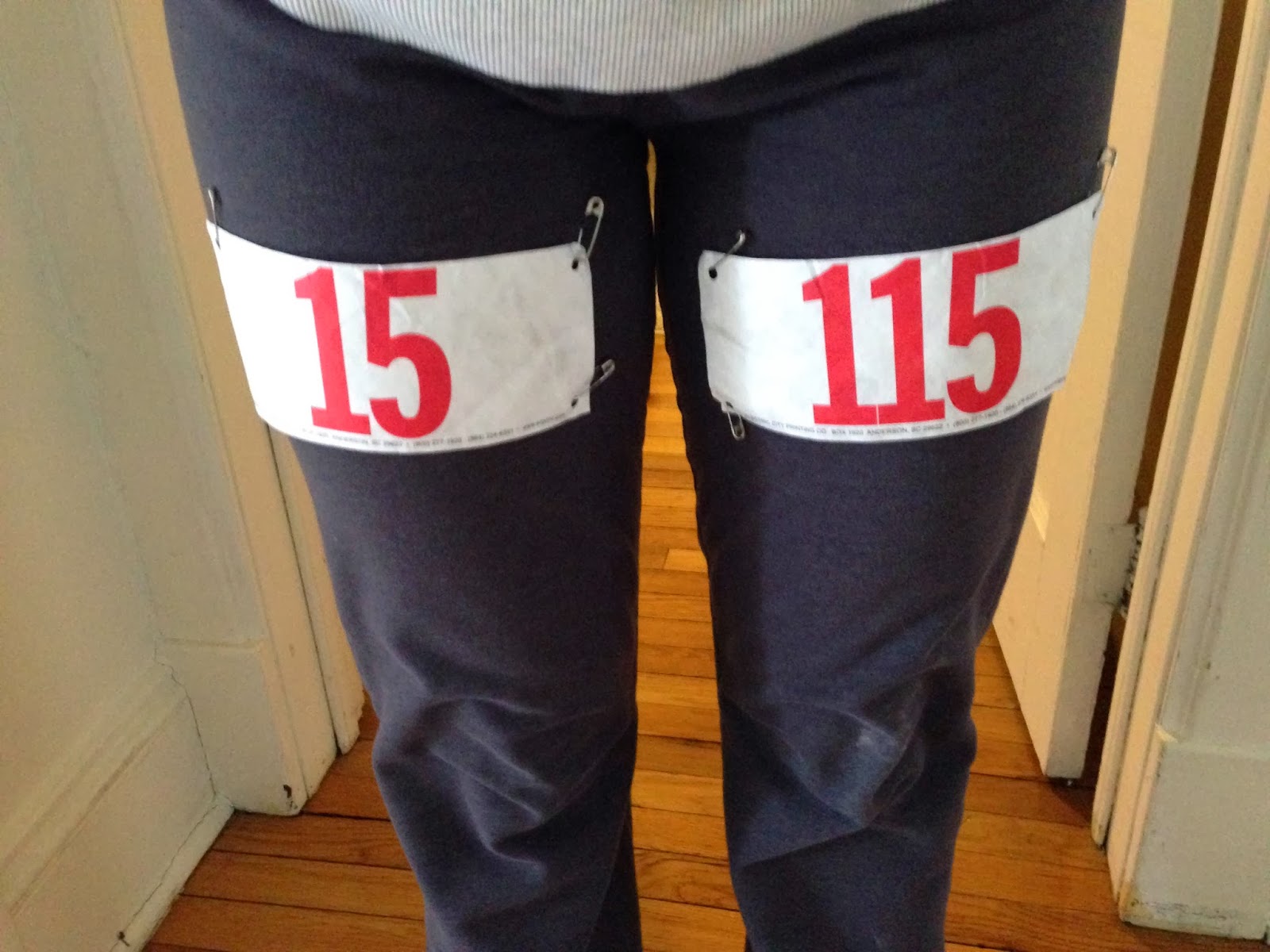 Anyways, I went home and went right to bed after the game, as I wanted a good night's rest and the girls were planning to meet at my apartment at 8:30 a.m. before heading over to the University of Albany campus, where the marathon relay we were running was scheduled to begin. Unfortunately, I woke up to the news that Jess and I's 3rd leg of the relay was sick and not able to attend. Which, although it is a bummer she is sick and we didn't get to see her, wasn't really a deal breaker for us as our main goal was to get 16 miles logged. We decided that I would run the first 10 miles alone, we would run 6 miles together and Jess would run the last 10 miles of the race alone. Since the relay was supposed to be a 10 mile, 5 mile, then 11 mile segment, I ended up putting on the race bibs for myself and my sick friend. As Jess and I enjoyed joking, I had "two legs!"
